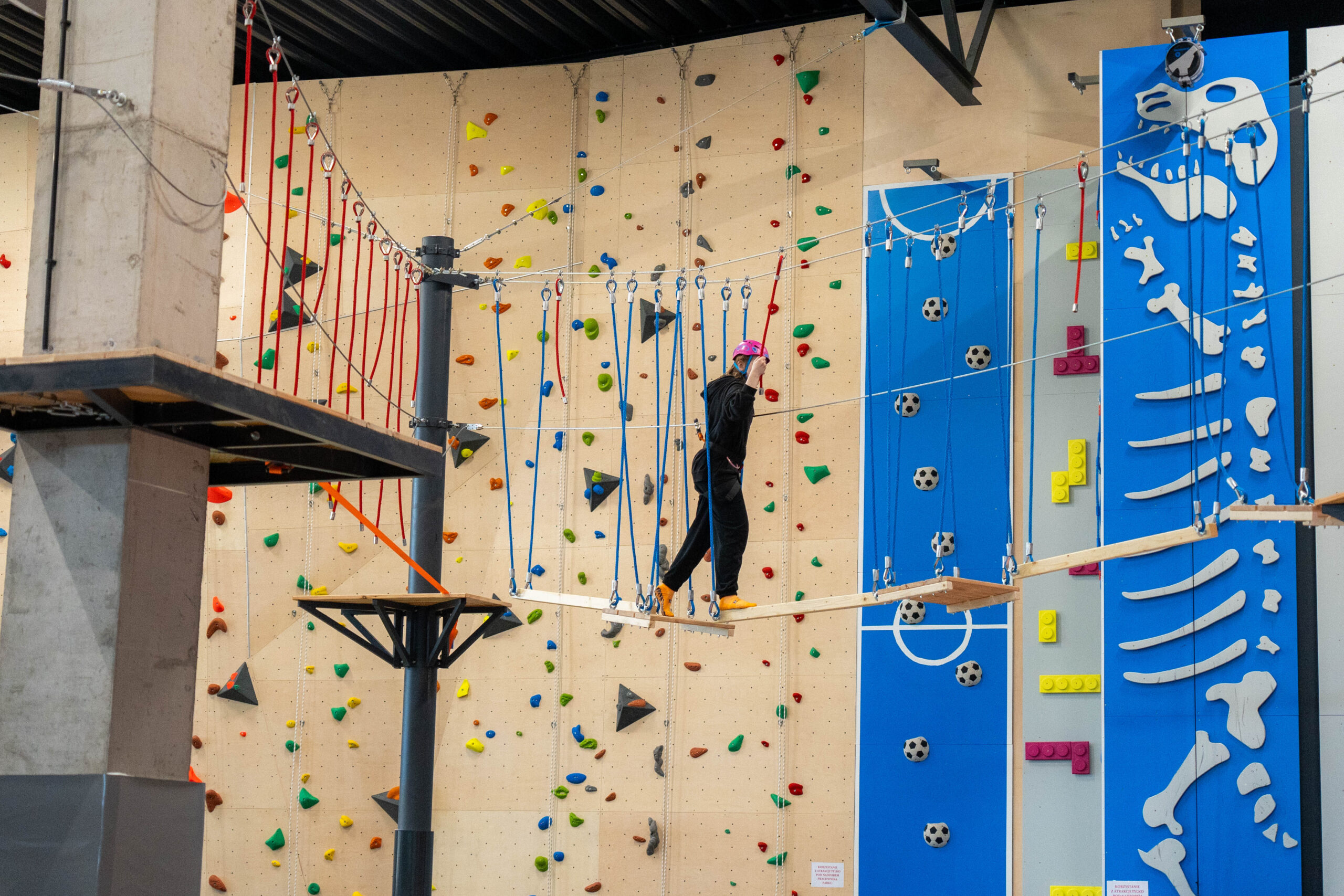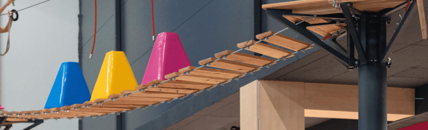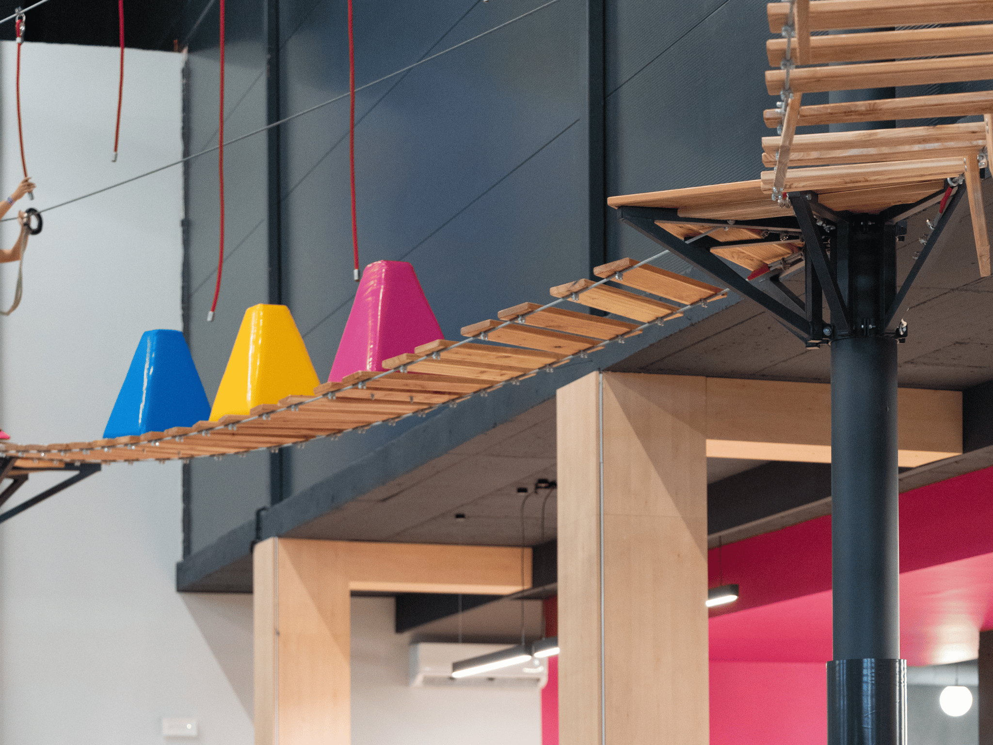 Nasz wewnętrzny park linowy to prawdziwe wyzwanie dla zwinności i odwagi.